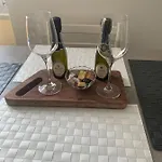 Het appartement biedt koffie- en theevoorzieningen en een ingerichte kitchenette met een waterkoker, een koelkast en een oven aan.